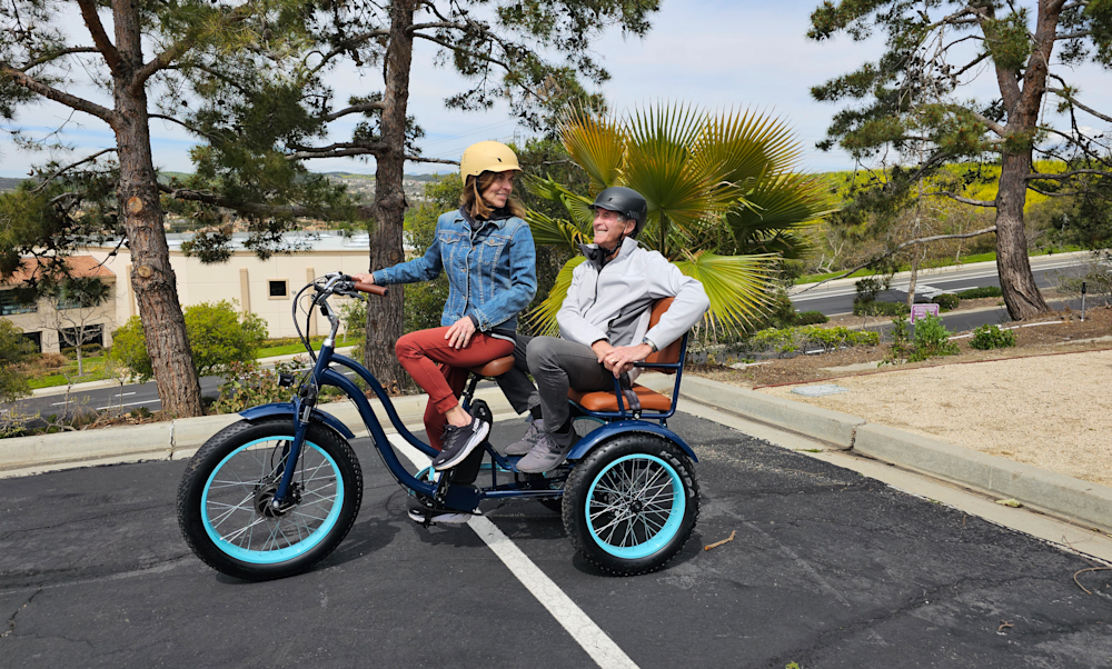 All right, there you have it. Coming in for a landing here. All right, so that's a tour of how to operate and ride the e-rickshaw from Sixthreezero. If you have any other questions at all, please comment below or reach out to us, at theteam@sixthreezero.com. Or you can call us at (310) 982-2877. In addition to that, this product will be linked in our bio. So if you don't have one already, you can find it on our website, sixthreezero.com. And we have a 30-day test drive on your e-bike. If you don't love it in 30 days, you can send it back, no questions asked, no money out of your pocket, and we'll have a full one-year warranty on everything related to the bike to make sure you can be up and riding with no problems. Now lastly, you can also join our Facebook pedalers group and you can see other people already posting about their e-rickshaws in the group.