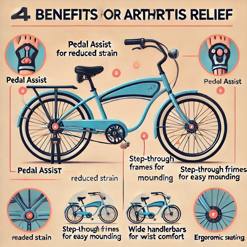 An upright riding position keeps the spine aligned and relieves pressure from the hands, wrists, and lower back, making it easier for those with arthritis to ride comfortably.