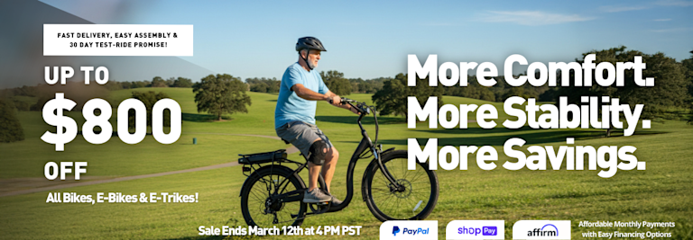 Step thru ebikes for men are great for easy mounting and dismounting. This is a category of ebike that a lot of senior men prefer. Because mounting and dismounting is safe and easy, it gives riders confidence. This step through e-bike style isn't just limited to senior men though, really any guy who just doesn't want to struggle getting on and off their e-bike. Any classification of ebike can be a step thru really. Although not a common design for men, it truly is beneficial to have a step through frame, regardless of your athletic ability. And again, a step through frame doesn't mean less power. A step through can be any range of motor or battery size. The Step Thru E-bike can also be a great option for senior men's electric bicycles as well. A Step Thru E-Bike is great for those men who suffer from mobility issues or disabilities.
