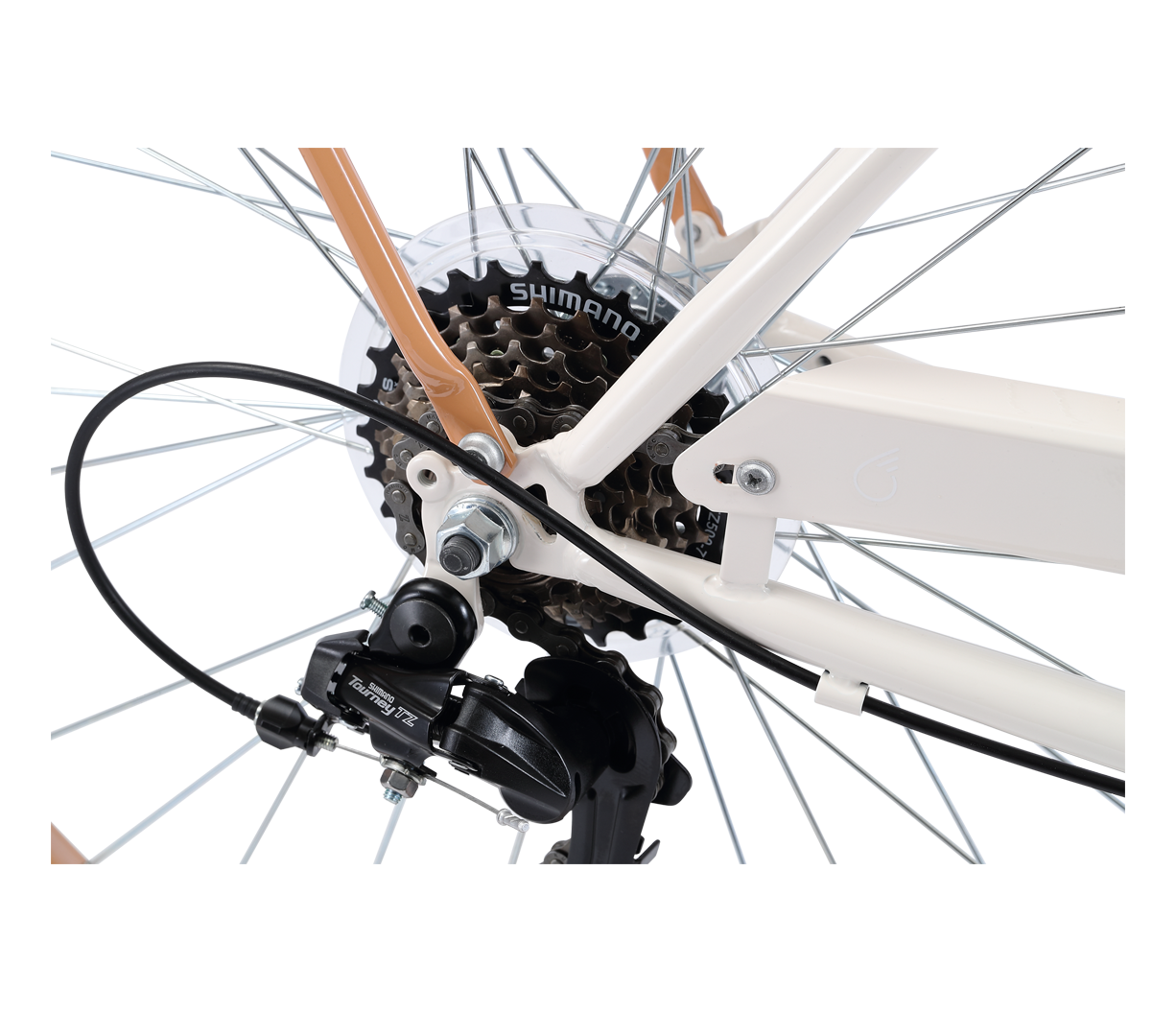 The ergonomic step-thru frame and cloud-soft details keep you riding easy all day long.